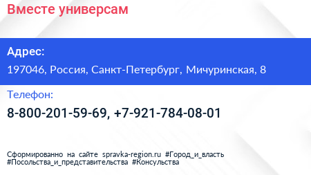 Вместе, универсам по адресу 197046, Россия, Санкт-Петербург, Мичуринская, 8 в дальнейшем Организация, размещена в следующих категориях: