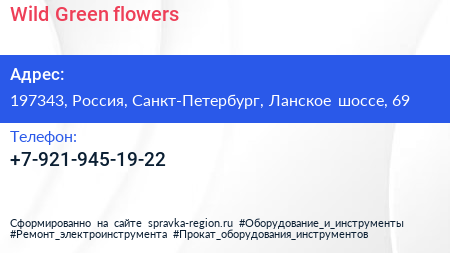 Wild Green flowers по адресу 197343, Россия, Санкт-Петербург, Ланское шоссе, 69 в дальнейшем Организация, размещена в следующих категориях: