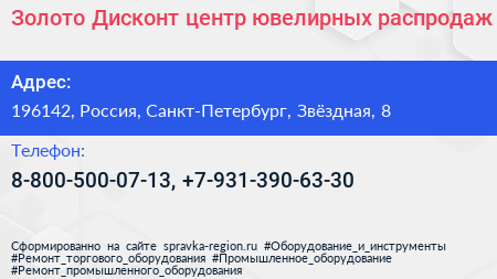 Золото Дисконт, центр ювелирных распродаж по адресу 196142, Россия, Санкт-Петербург, Звёздная, 8 в дальнейшем Организация, размещена в следующих категориях: