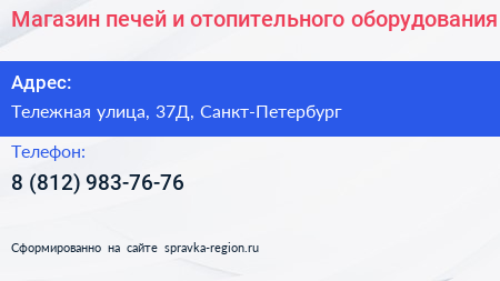 Магазин печей и отопительного оборудования по адресу Тележная улица, 37Д, Санкт-Петербург в дальнейшем Организация, размещена в следующих категориях: