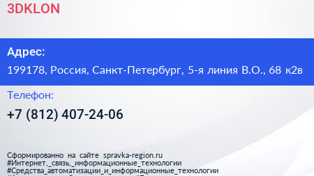 3DKLON по адресу 199178, Россия, Санкт-Петербург, 5-я линия В.О., 68 к2в в дальнейшем Организация, размещена в следующих категориях: