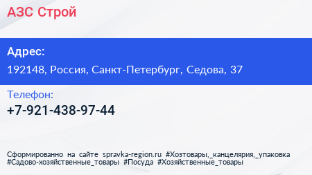 АЗС-Строй по адресу 192148, Россия, Санкт-Петербург, Седова, 37 в дальнейшем Организация, размещена в следующих категориях: