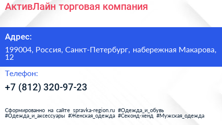 АктивЛайн, торговая компания по адресу 199004, Россия, Санкт-Петербург, набережная Макарова, 12 в дальнейшем Организация, размещена в следующих категориях: