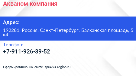 Акваном, компания по адресу 192281, Россия, Санкт-Петербург, Балканская площадь, 5 к4 в дальнейшем Организация, размещена в следующих категориях: