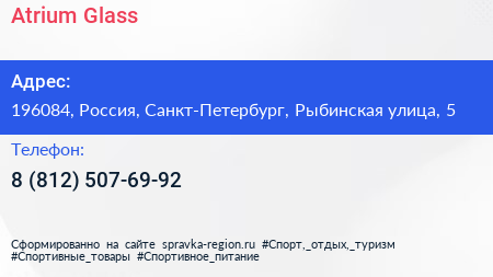 Atrium Glass по адресу 196084, Россия, Санкт-Петербург, Рыбинская улица, 5 в дальнейшем Организация, размещена в следующих категориях: