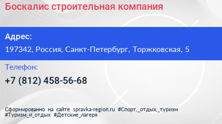 Боскалис, строительная компания по адресу 197342, Россия, Санкт-Петербург, Торжковская, 5 в дальнейшем Организация, размещена в следующих категориях: