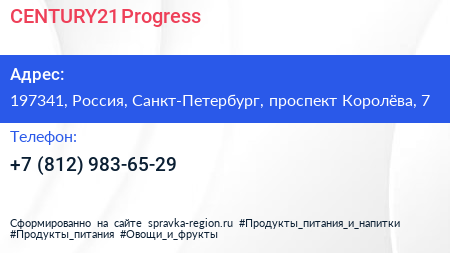 CENTURY21 Progress по адресу 197341, Россия, Санкт-Петербург, проспект Королёва, 7 в дальнейшем Организация, размещена в следующих категориях: