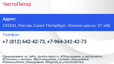 ЧистоПитер по адресу 192241, Россия, Санкт-Петербург, Южное шоссе, 37 к4Б в дальнейшем Организация, размещена в следующих категориях: