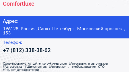 Comfortluxe по адресу 196128, Россия, Санкт-Петербург, Московский проспект, 153 в дальнейшем Организация, размещена в следующих категориях: