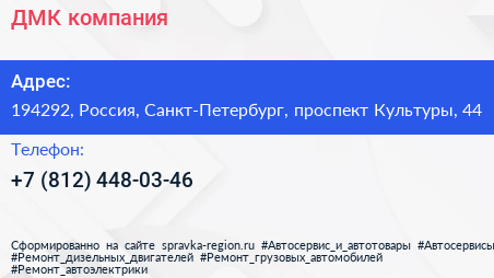 ДМК, компания по адресу 194292, Россия, Санкт-Петербург, проспект Культуры, 44 в дальнейшем Организация, размещена в следующих категориях: