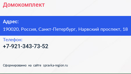 Домокомплект по адресу 190020, Россия, Санкт-Петербург, Нарвский проспект, 18 в дальнейшем Организация, размещена в следующих категориях: