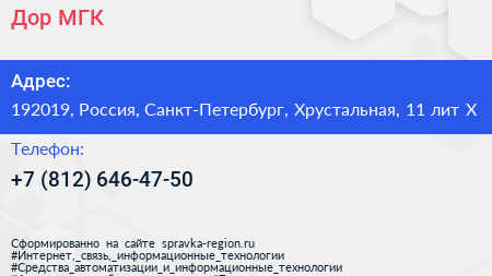 Дор МГК по адресу 192019, Россия, Санкт-Петербург, Хрустальная, 11 лит Х в дальнейшем Организация, размещена в следующих категориях: