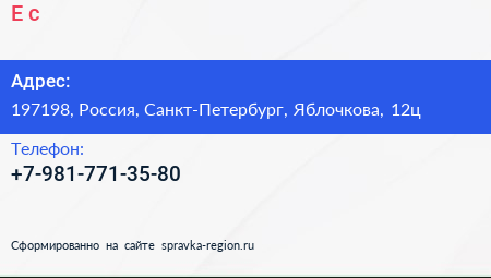 E & c по адресу 197198, Россия, Санкт-Петербург, Яблочкова, 12ц в дальнейшем Организация, размещена в следующих категориях: