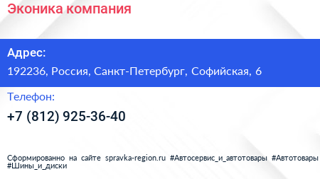 Эконика, компания по адресу 192236, Россия, Санкт-Петербург, Софийская, 6 в дальнейшем Организация, размещена в следующих категориях:
