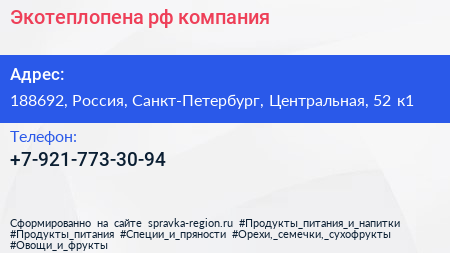 Экотеплопена.рф, компания по адресу 188692, Россия, Санкт-Петербург, Центральная, 52 к1 в дальнейшем Организация, размещена в следующих категориях: