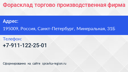 Форасклад, торгово-производственная фирма по адресу 195009, Россия, Санкт-Петербург, Минеральная, 31Б в дальнейшем Организация, размещена в следующих категориях: