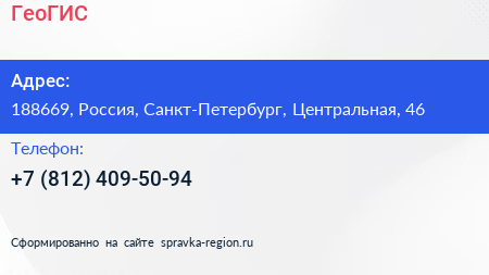 ГеоГИС по адресу 188669, Россия, Санкт-Петербург, Центральная, 46 в дальнейшем Организация, размещена в следующих категориях: