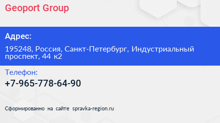 Geoport Group по адресу 195248, Россия, Санкт-Петербург, Индустриальный проспект, 44 к2 в дальнейшем Организация, размещена в следующих категориях: