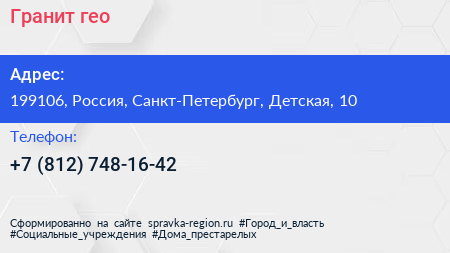Гранит-гео по адресу 199106, Россия, Санкт-Петербург, Детская, 10 в дальнейшем Организация, размещена в следующих категориях: