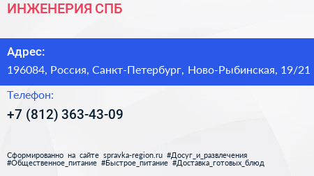 ИНЖЕНЕРИЯ-СПБ по адресу 196084, Россия, Санкт-Петербург, Ново-Рыбинская, 19/21 в дальнейшем Организация, размещена в следующих категориях: