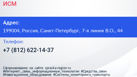 ИСМ по адресу 199004, Россия, Санкт-Петербург, 7-я линия В.О., 44 в дальнейшем Организация, размещена в следующих категориях:
