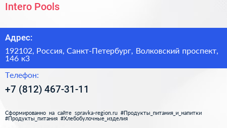 Intero Pools по адресу 192102, Россия, Санкт-Петербург, Волковский проспект, 146 к3 в дальнейшем Организация, размещена в следующих категориях: