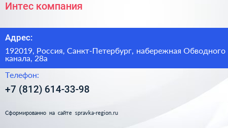 Интес, компания по адресу 192019, Россия, Санкт-Петербург, набережная Обводного канала, 28а в дальнейшем Организация, размещена в следующих категориях: