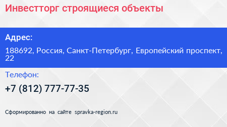Инвестторг, строящиеся объекты по адресу 188692, Россия, Санкт-Петербург, Европейский проспект, 22 в дальнейшем Организация, размещена в следующих категориях: