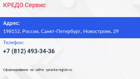 КРЕДО-Сервис по адресу 198152, Россия, Санкт-Петербург, Новостроек, 29 в дальнейшем Организация, размещена в следующих категориях: