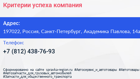 Критерии успеха, компания по адресу 197022, Россия, Санкт-Петербург, Академика Павлова, 14а в дальнейшем Организация, размещена в следующих категориях: