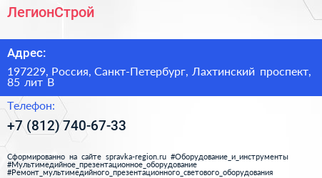 ЛегионСтрой по адресу 197229, Россия, Санкт-Петербург, Лахтинский проспект, 85 лит В в дальнейшем Организация, размещена в следующих категориях: