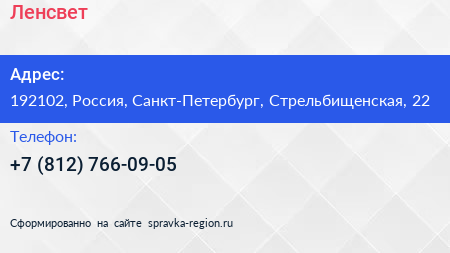 Ленсвет по адресу 192102, Россия, Санкт-Петербург, Стрельбищенская, 22 в дальнейшем Организация, размещена в следующих категориях: