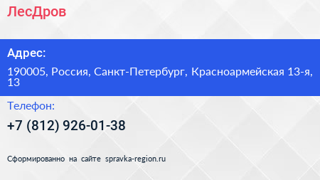 ЛесДров по адресу 190005, Россия, Санкт-Петербург, Красноармейская 13-я, 13 в дальнейшем Организация, размещена в следующих категориях: