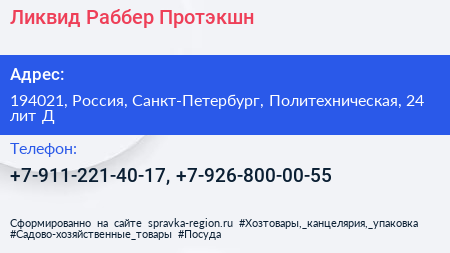 Ликвид Раббер Протэкшн по адресу 194021, Россия, Санкт-Петербург, Политехническая, 24 лит Д в дальнейшем Организация, размещена в следующих категориях: