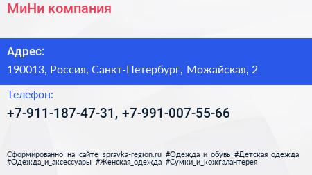 МиНи, компания по адресу 190013, Россия, Санкт-Петербург, Можайская, 2 в дальнейшем Организация, размещена в следующих категориях: