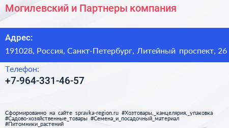 Могилевский и Партнеры, компания по адресу 191028, Россия, Санкт-Петербург, Литейный проспект, 26 в дальнейшем Организация, размещена в следующих категориях: