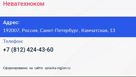 Неватехноком по адресу 192007, Россия, Санкт-Петербург, Камчатская, 13 в дальнейшем Организация, размещена в следующих категориях: