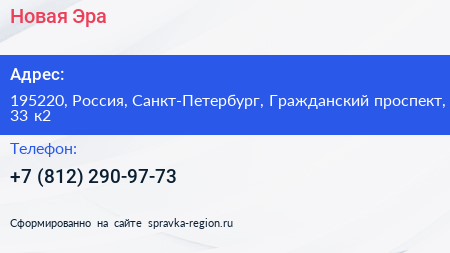 Новая Эра по адресу 195220, Россия, Санкт-Петербург, Гражданский проспект, 33 к2 в дальнейшем Организация, размещена в следующих категориях: