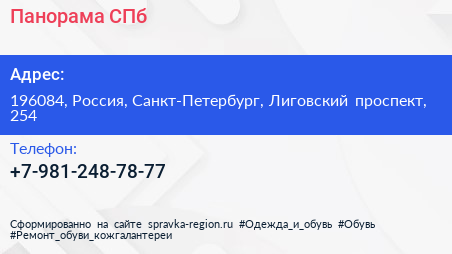 Панорама СПб по адресу 196084, Россия, Санкт-Петербург, Лиговский проспект, 254 в дальнейшем Организация, размещена в следующих категориях: