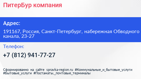 ПитерБур, компания по адресу 191167, Россия, Санкт-Петербург, набережная Обводного канала, 23-27 в дальнейшем Организация, размещена в следующих категориях: