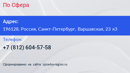По Сфера по адресу 196128, Россия, Санкт-Петербург, Варшавская, 23 к3 в дальнейшем Организация, размещена в следующих категориях: