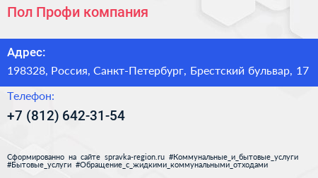 Пол-Профи, компания по адресу 198328, Россия, Санкт-Петербург, Брестский бульвар, 17 в дальнейшем Организация, размещена в следующих категориях: