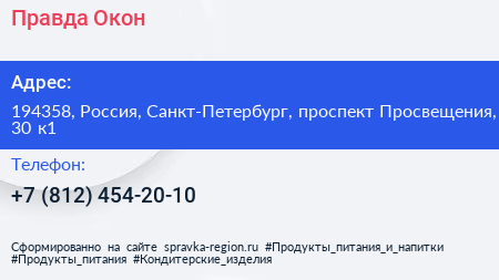 Правда Окон по адресу 194358, Россия, Санкт-Петербург, проспект Просвещения, 30 к1 в дальнейшем Организация, размещена в следующих категориях: