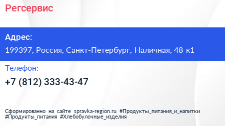 Регсервис по адресу 199397, Россия, Санкт-Петербург, Наличная, 48 к1 в дальнейшем Организация, размещена в следующих категориях: