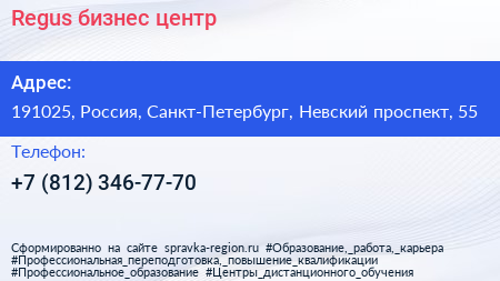 Regus, бизнес-центр по адресу 191025, Россия, Санкт-Петербург, Невский проспект, 55 в дальнейшем Организация, размещена в следующих категориях: