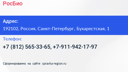 РосБио по адресу 192102, Россия, Санкт-Петербург, Бухарестская, 1 в дальнейшем Организация, размещена в следующих категориях: