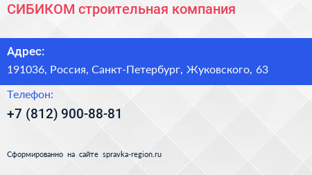 СИБИКОМ, строительная компания по адресу 191036, Россия, Санкт-Петербург, Жуковского, 63 в дальнейшем Организация, размещена в следующих категориях: