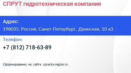 СПРУТ, гидротехническая компания по адресу 198035, Россия, Санкт-Петербург, Двинская, 10 к3 в дальнейшем Организация, размещена в следующих категориях: