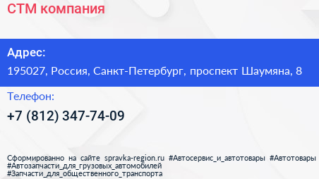 СТМ, компания по адресу 195027, Россия, Санкт-Петербург, проспект Шаумяна, 8 в дальнейшем Организация, размещена в следующих категориях: