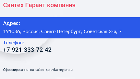 Сантех Гарант, компания по адресу 191036, Россия, Санкт-Петербург, Советская 3-я, 7 в дальнейшем Организация, размещена в следующих категориях: